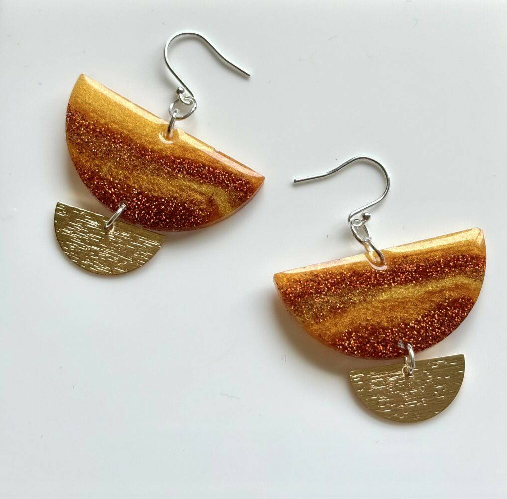 Elegant half moon drop earrings in warming autumnal shades of coppers, gold and rust, with just a tiny bit of sparkle.